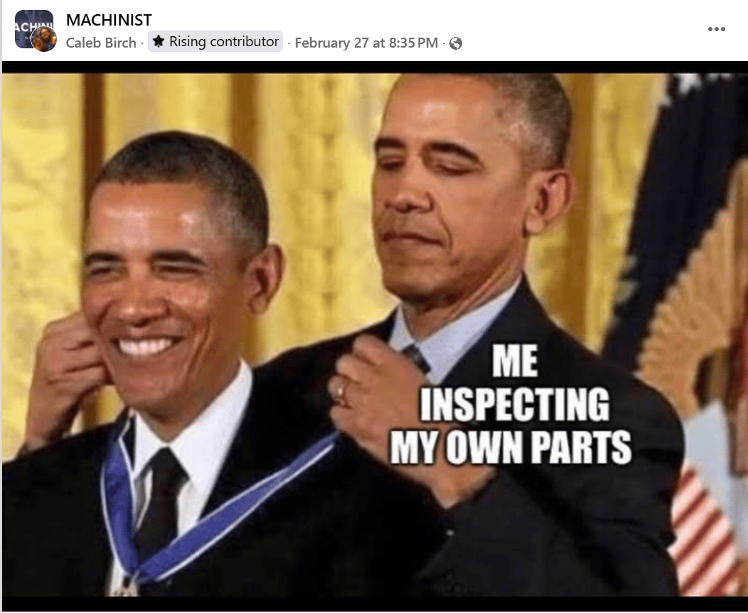 And of course, we finish things off with a few machining memes — including one that perfectly captures the moment when you're inspecting your own parts.